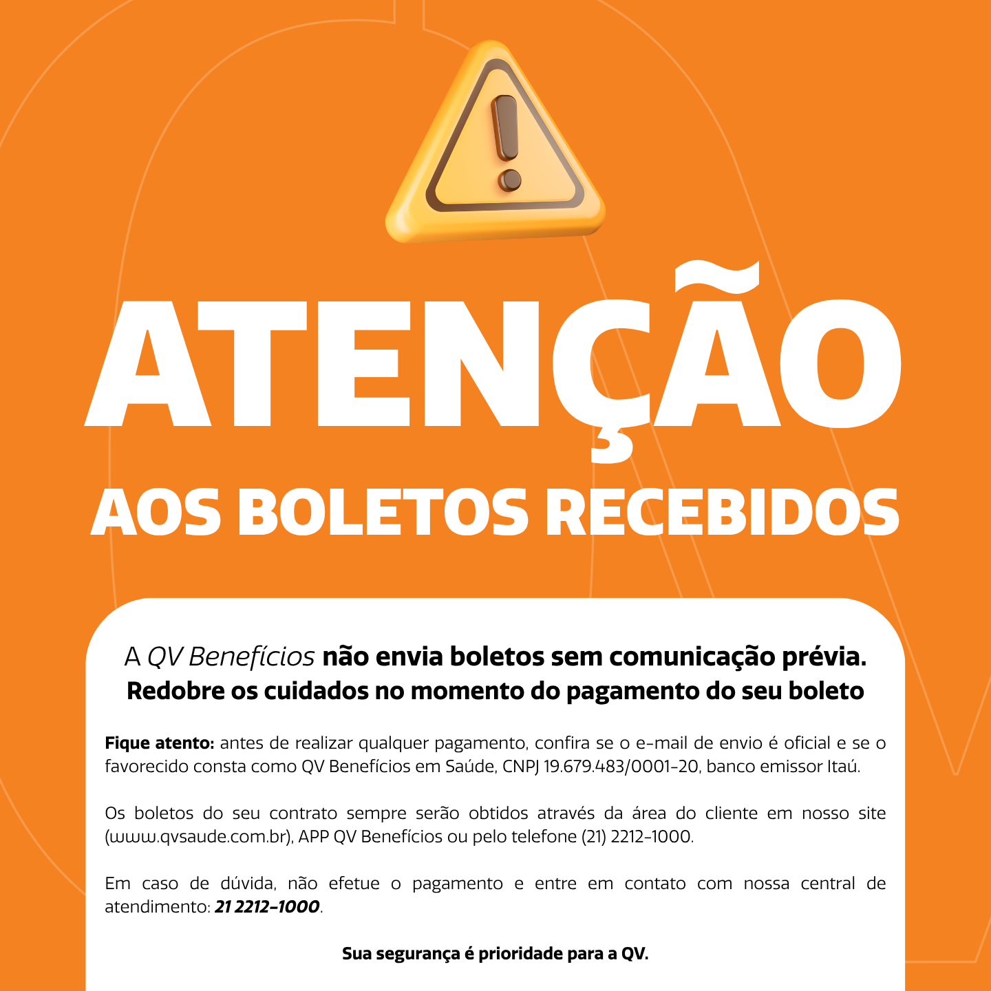 Nós não enviamos segunda via de boletos por WhatsApp. Para evitar fraudes, não aceite boletos emitidos por terceiros.